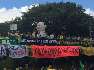 Munidos com faixas, cartazes, bandeiras do Brasil e vestidos de verde amarelo, manifestantes gritavam 'Fora, Dilma!' e 'Fora, PT'. Também havia pessoas com as caras pintadas com as cores nacionais. Nos alto-falantes, palavras de ordem eram expressadas no mesmo sentido, contrárias ao governo federal.
